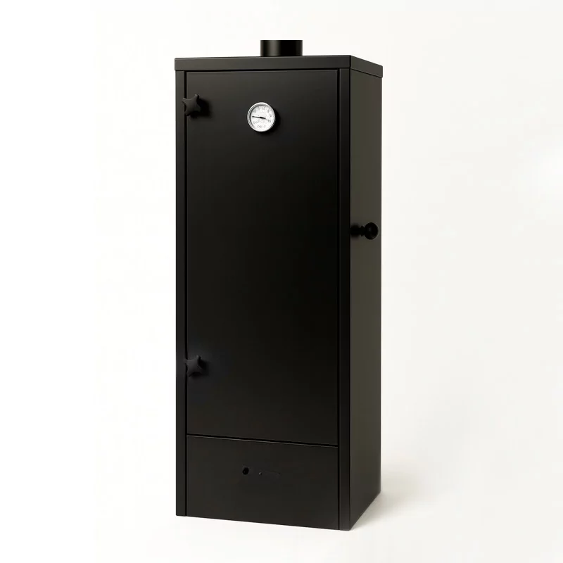 Le Smoki 6 est un fumoir armoire tout inox parfaitement adaptée au fumage à froid de filets de saumon entiers suspendus (fumage à la ficelle). Sa hauteur de 1.25 m évite en effet que les filets suspendus ne soient trop proches de la source de chaleur liée à la combustion de la sciure.